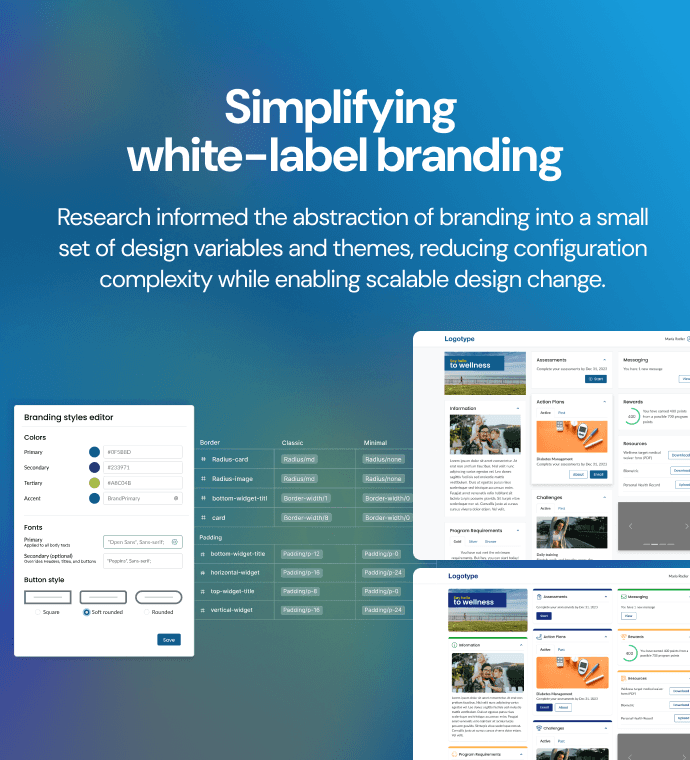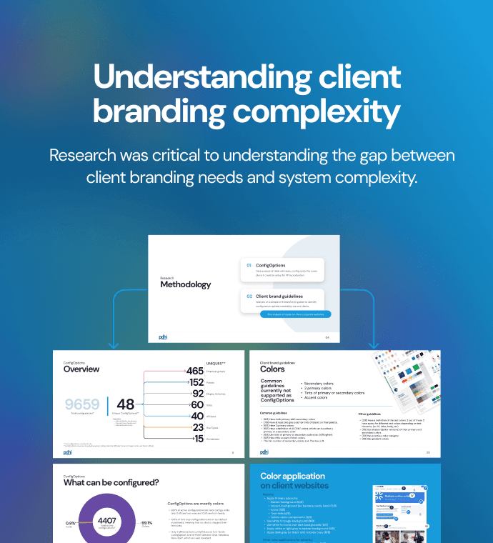 Simplified client branding configuration by 85%: reduced options from 48 to 7, aligning with real client brand guidelines and cutting implementation time for new programs by ~70%.